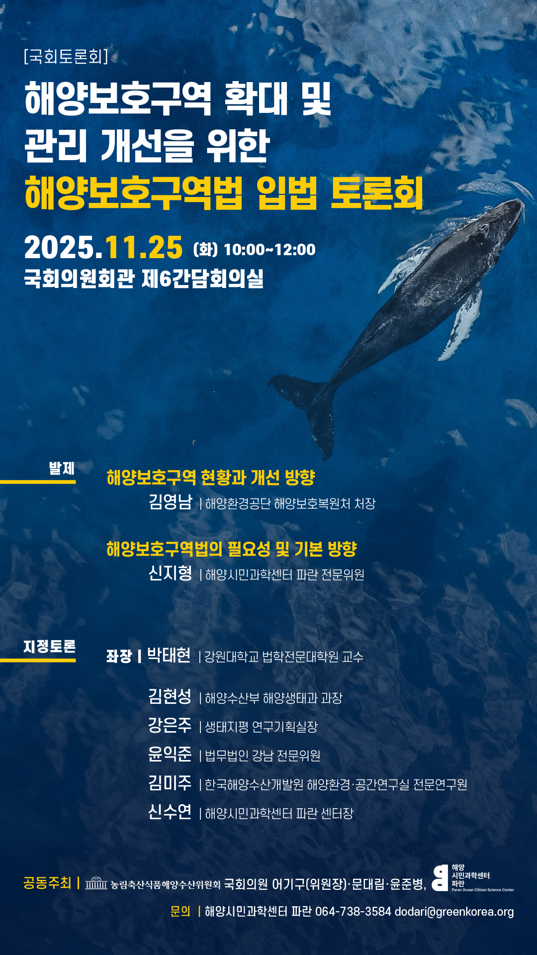 📣 「해양보호구역 확대 및 관리 개선을 위한 해양보호구역법 입법 토론회」