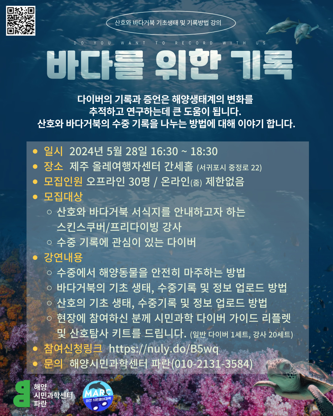 제주바다에 오래토록 살아왔던 두 존재, 산호와 바다거북의 서식지 보전과 연구를 위한