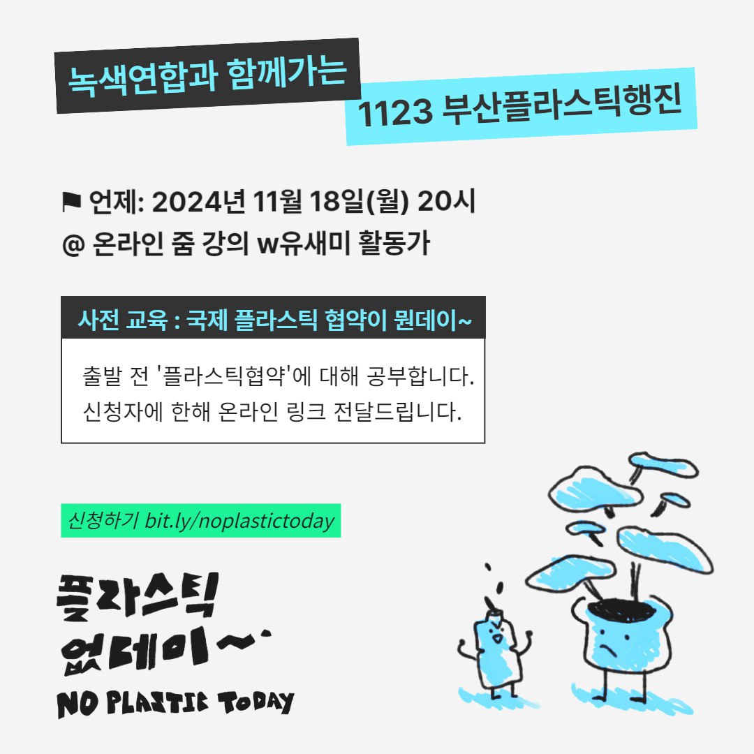 1123 부산 플라스틱 행진에 함께 하실 분들, 신청해주세요.