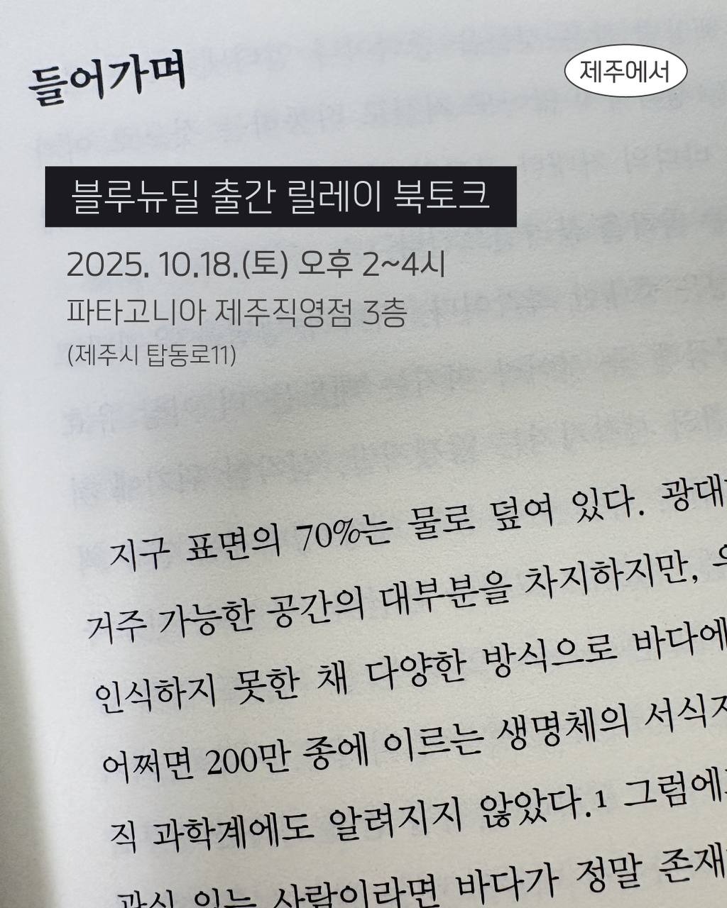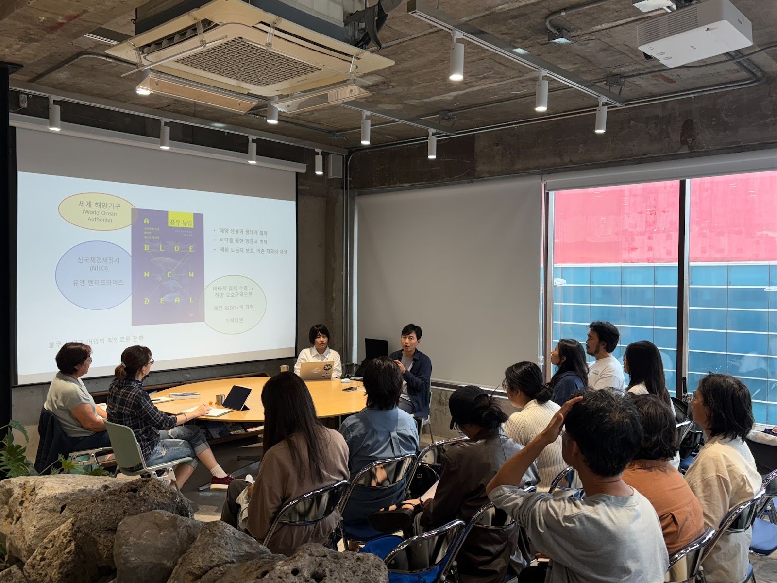 <블루 뉴딜> 북토크가 제주시 탑동광장의 파타고니아 제주직영점 3층에서 열렸습니다. ⓒ파란
