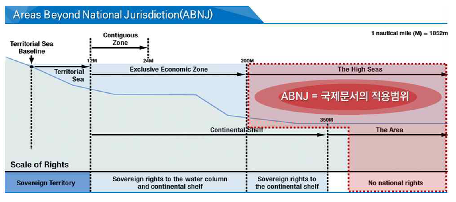 유엔 해양법 협약에 따른 영해, 배타적 경제수역, 공해의 범위와 해당 국가의 권리