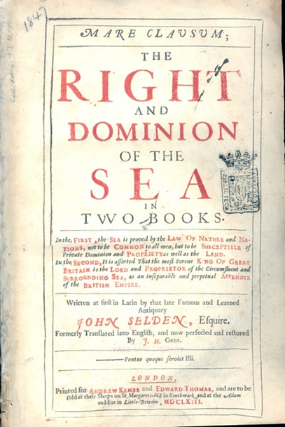 휴고 그로티우스의 ‘열린 바다’(좌)와 존 셀든의 ‘닫힌 바다’(우)