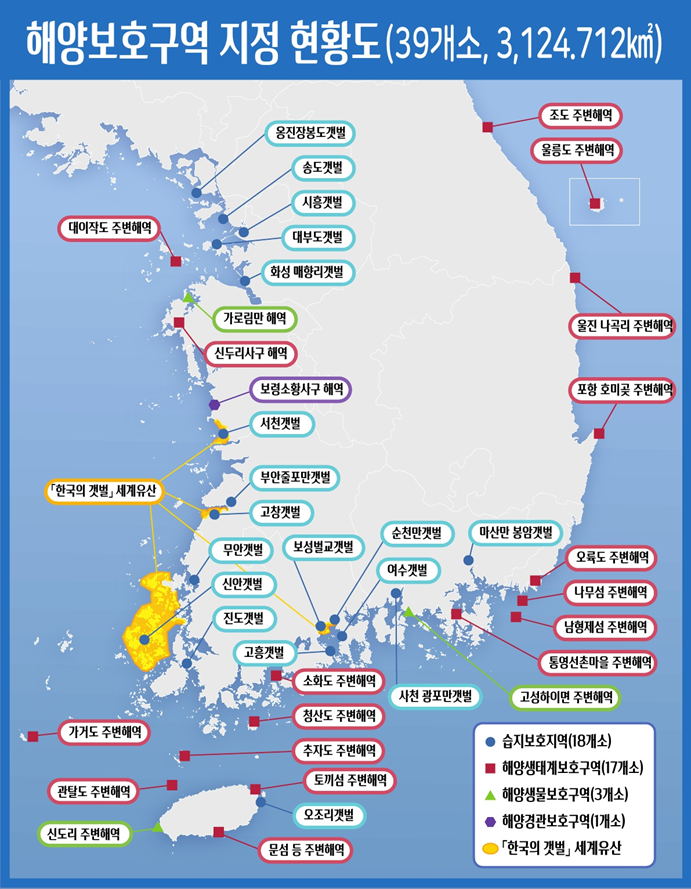 좌불법, 비규제, 비보고 어업(좌), 해양보호구역 지정 현황도(우)