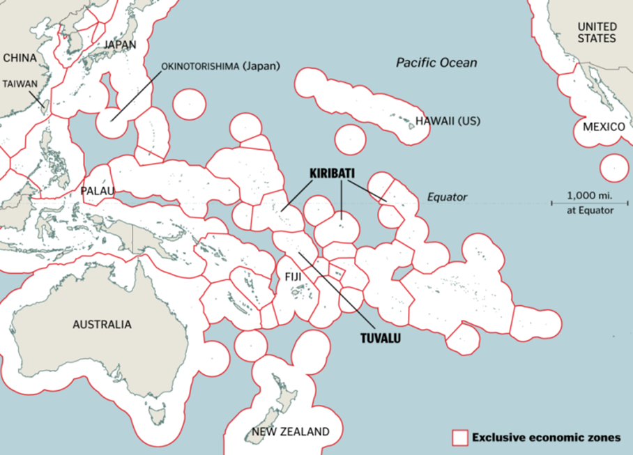 크리스 암스트롱은 바다의 경계인 영해, 배타적 경제수역, 공해를 누가, 어떻게 점령했는지 질문합니다. 일례로, 세계에서 가장 넓은 배타적 경제수역을 보유한 국가는 어디일까요? 바로, 프랑스입니다. 프랑스, 미국, 호주, 러시아, 영국의 ‘빅 5’ 국가는 현재 4,500만㎢가 넘는 해양 자원을 차지하고 있습니다. 그런데 프랑스나 영국처럼 비교적 국토 면적이 작은 나라들이 어떻게 그토록 광대한 배타적 경제수역을 보유하게 되었을까요? 그 해답은 식민지 시대, 제국주의 열강의 정복의 역사로 거슬러 올라갑니다.