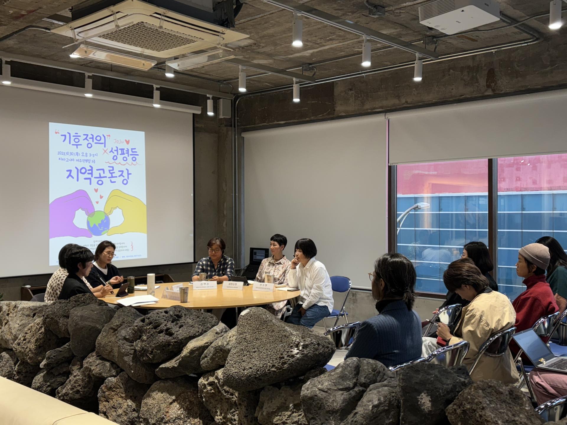 현재 ‘2035년 국가 온실가스 감축목표’(NDC) 논의가 한창입니다. NDC 논의는 수치상의 감축률만이 아니라, 기후재난 앞에서 누가 취약한지, 누가 감축하고 비용을 부담하는지, 누가 그 결정에 참여하는지 논의하는, 사회적 합의와 공적 책임의 장입니다. 파란은 성평등한 기후정책 캠페인을 진행 중인 여성환경연대의 제안을 받아, 지난 10월 30일 공정하고 포용적이어야 할 기후논의 테이블은 어떤 모습이어야 할지, 제주 지역의 기후 거버넌스 상황과 현실은 어떠한지 이야기 나누는 자리를 함께 마련했습니다.