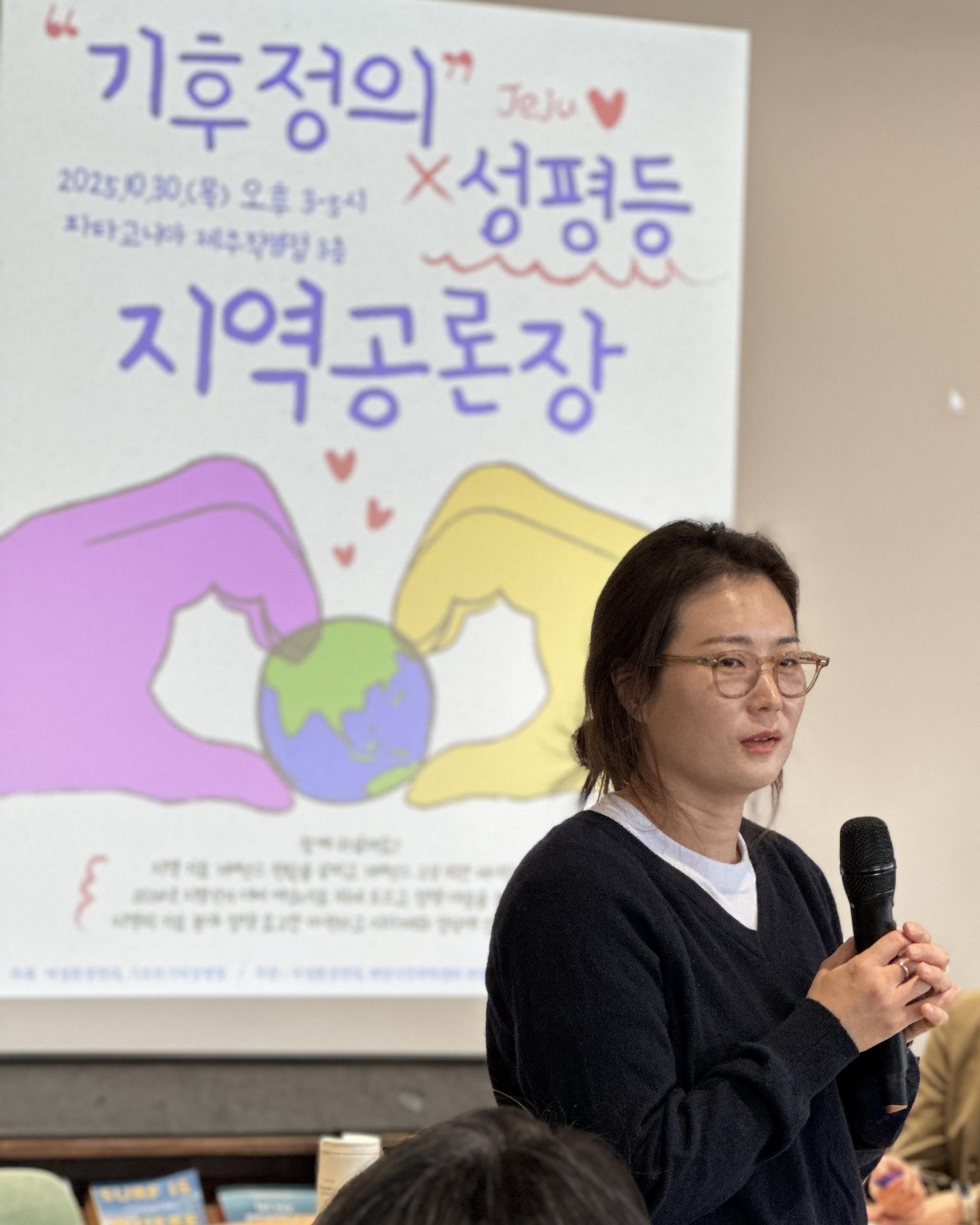 기후정의와 성평등, 제주공론장(좌:이안소영 대표/ 우:김연순 이사장) 발표 모습