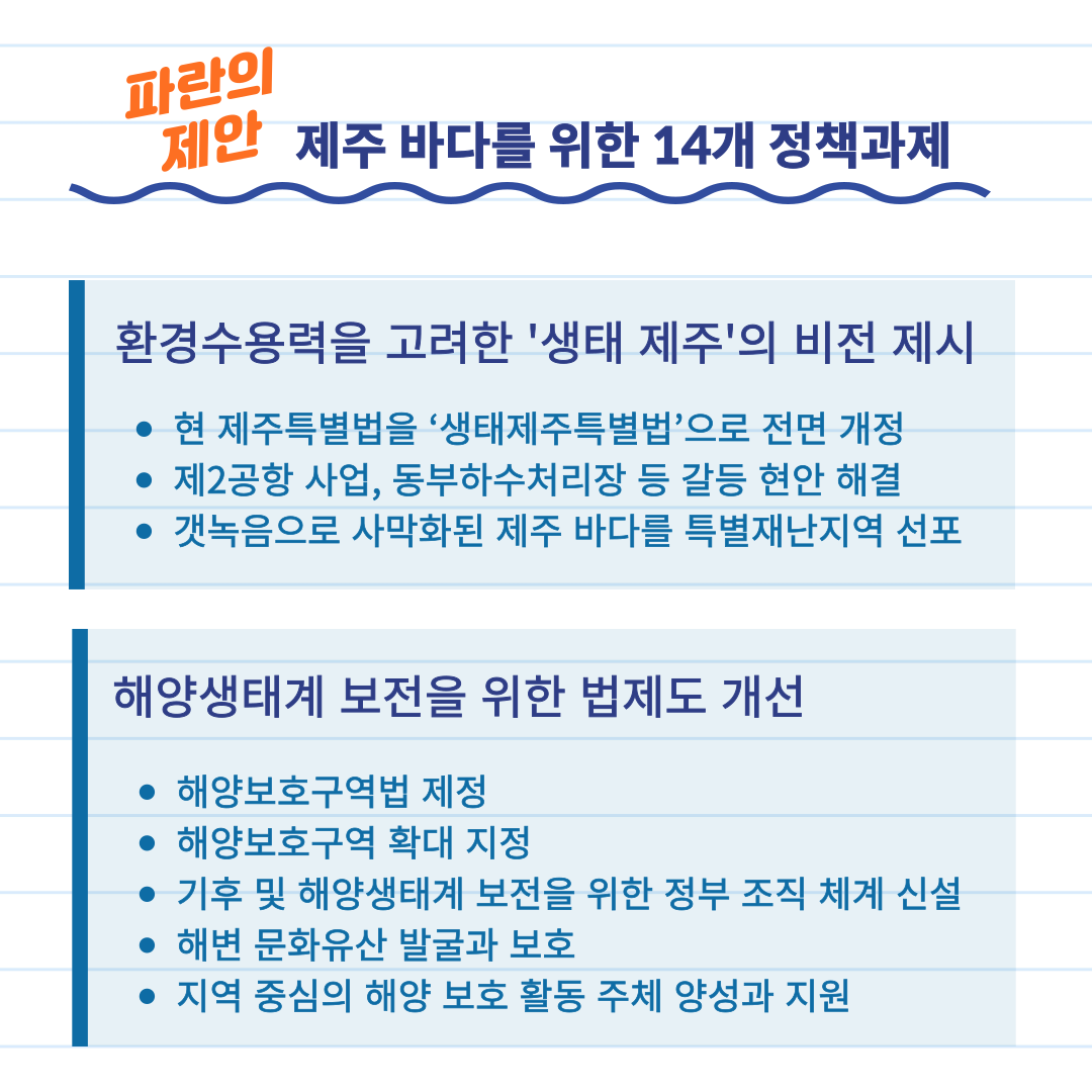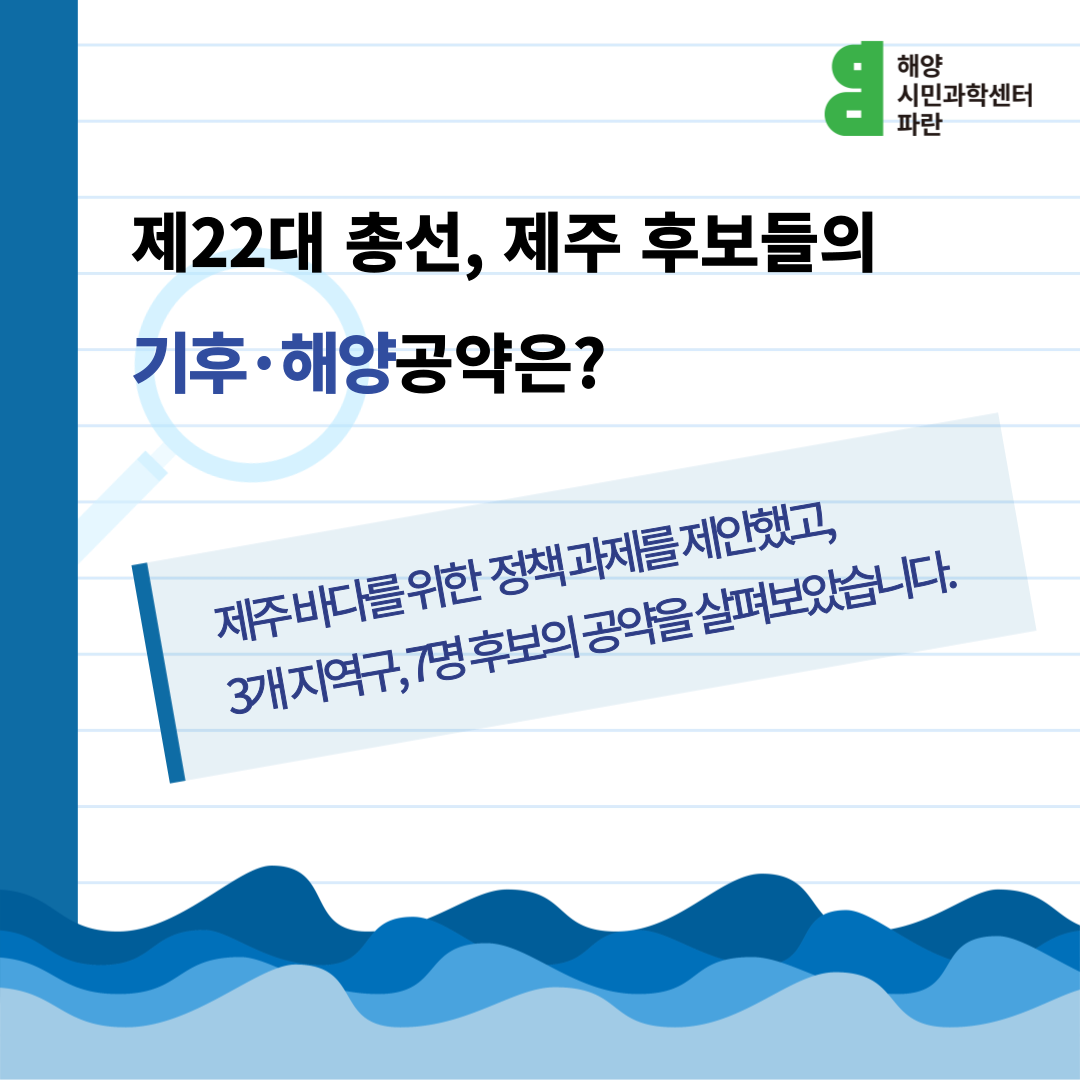 해양시민과학센터 파란이 제안한 해양 정책 과제와 제주 후보들의 기후, 해양 공약 살펴볼까요?
