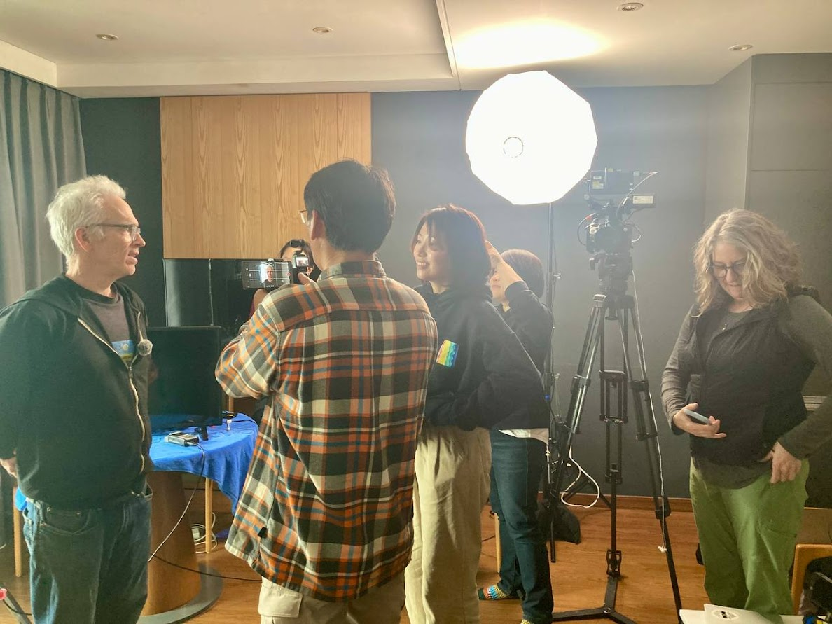 제주 바다에 대한 실내 인터뷰 모습. 인터뷰이로 이정준 감독(해양다큐멘터리 제작팀 돌핀맨), 고명효 해녀(이호동), 윤상훈 전문위원(파란)이 참여했고, 촬영은 제이미(영상감독), 촬영 지원은 패티(오션 컨서번시), 황은미 신수연(파란), 홍상희(돌핀맨)가 했다. ⓒ 파란
