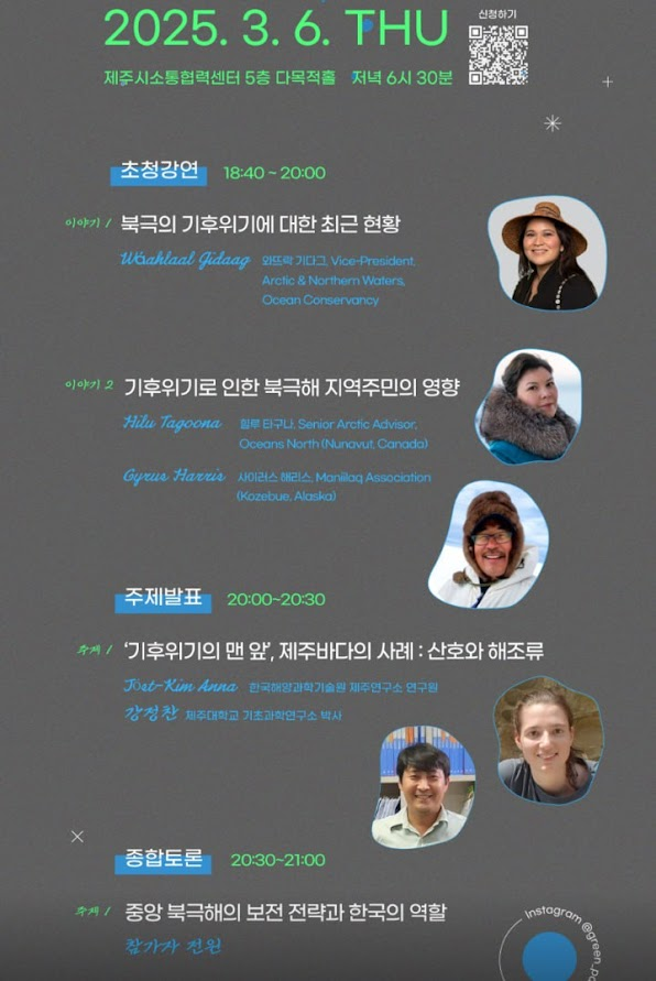 +) 기후위기로 인한 북극해의 변화와 지역 토착민이 받는 영향에 대한 자세한 내용은 북극친구들의 제주 방문기 2편에 이어집니다.