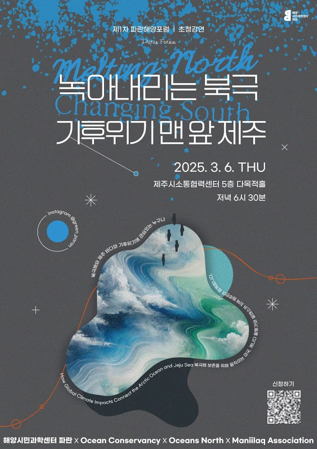 "북극 빙하만 재앙처럼 녹아내리는 줄 알았는데, 남쪽 바다도 이렇게나 변하고 있다니! 이 상황을 전 세계의 해양 관계자들이 모이는 OOC에서 공유해봅시다" 오션 컨서번시 활동가, 스캇 하일리먼의 제안으로 <녹아내리는 북극, 변하는 남쪽(제주) 바다 Melting North, Changing South>라는 타이틀과 공동 기획 프로그램이 만들어집니다.