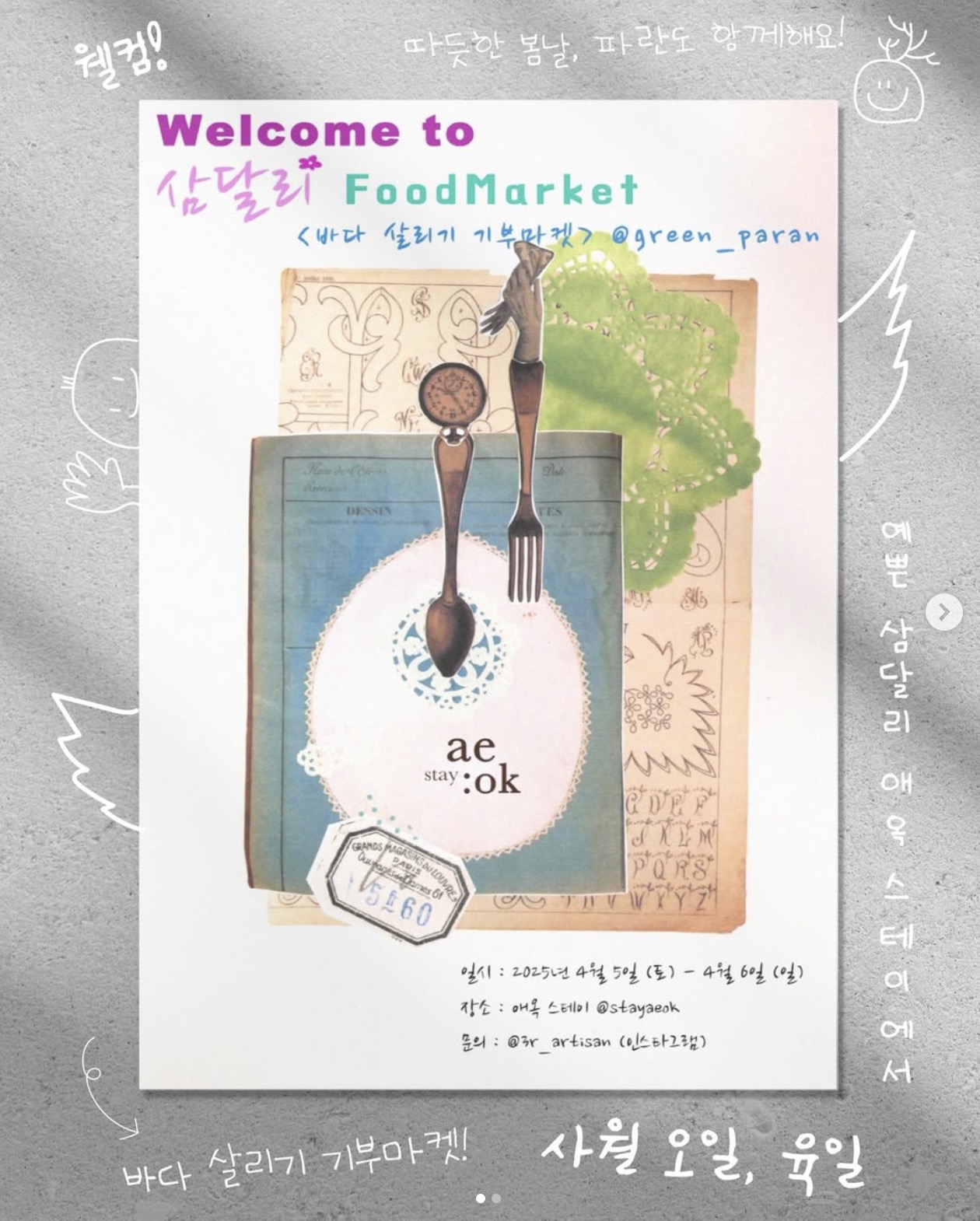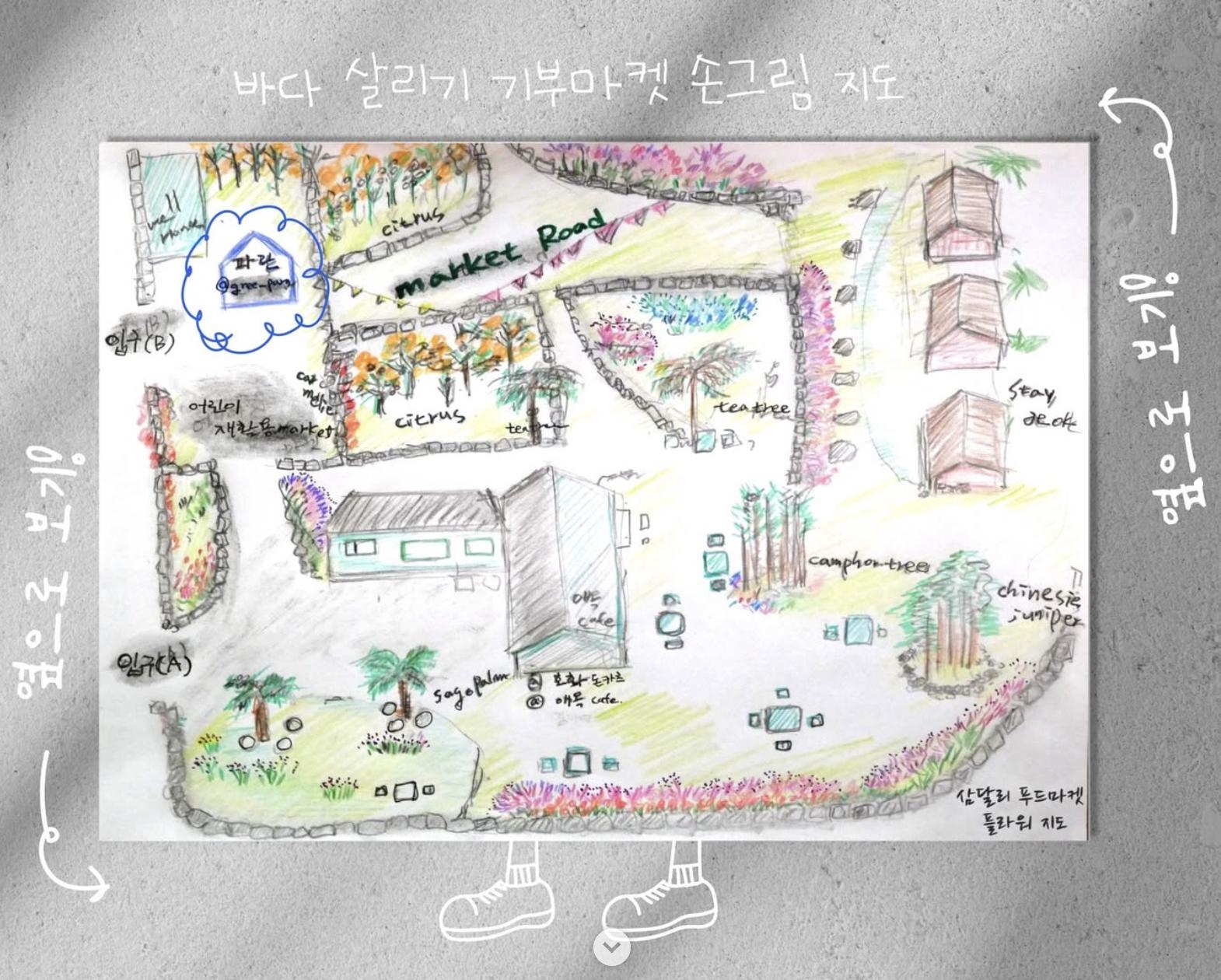 <바다 살리기 프로젝트, 삼달리 푸드&플리 마켓>은 드라마로 유명해진 '삼달리'에서 열렸습니다. 김기연 회원님과 연이 있는 '스테이애옥' 사장님께서 마켓을 위해 기꺼이 아름다운 정원을 내어주셨습니다. 거센 바람에 비까지 종종 내렸던 토요일에도, 오래간만에 쨍한 햇빛이 가득했던 일요일에도 사람들이 북적북적했답니다.