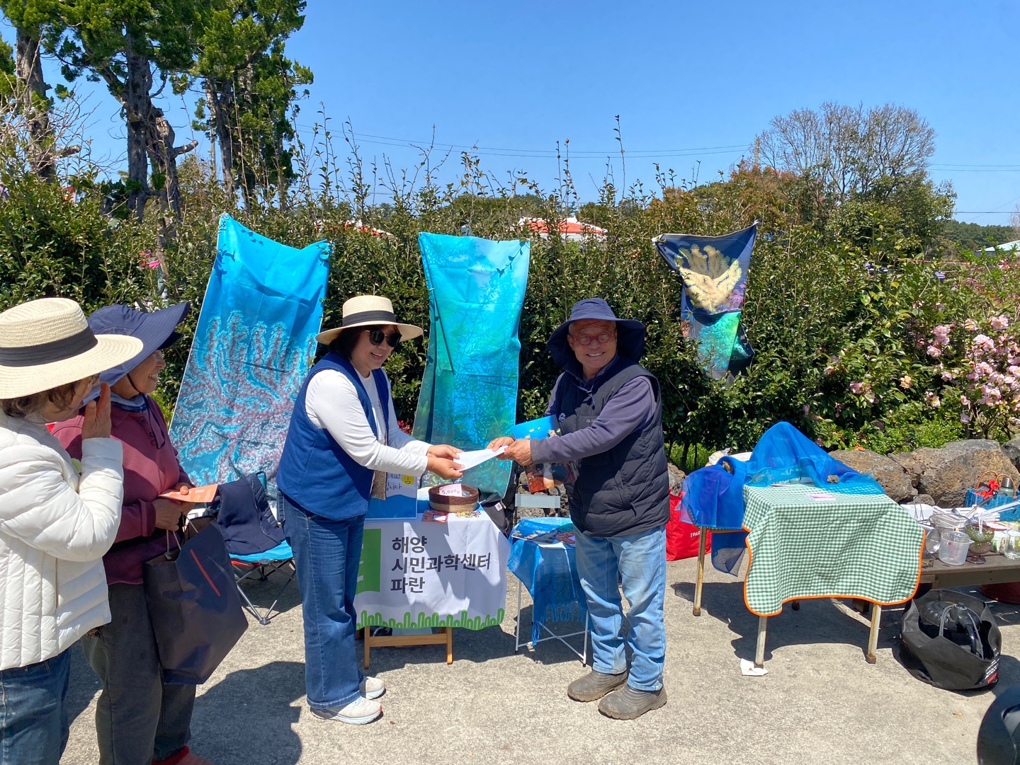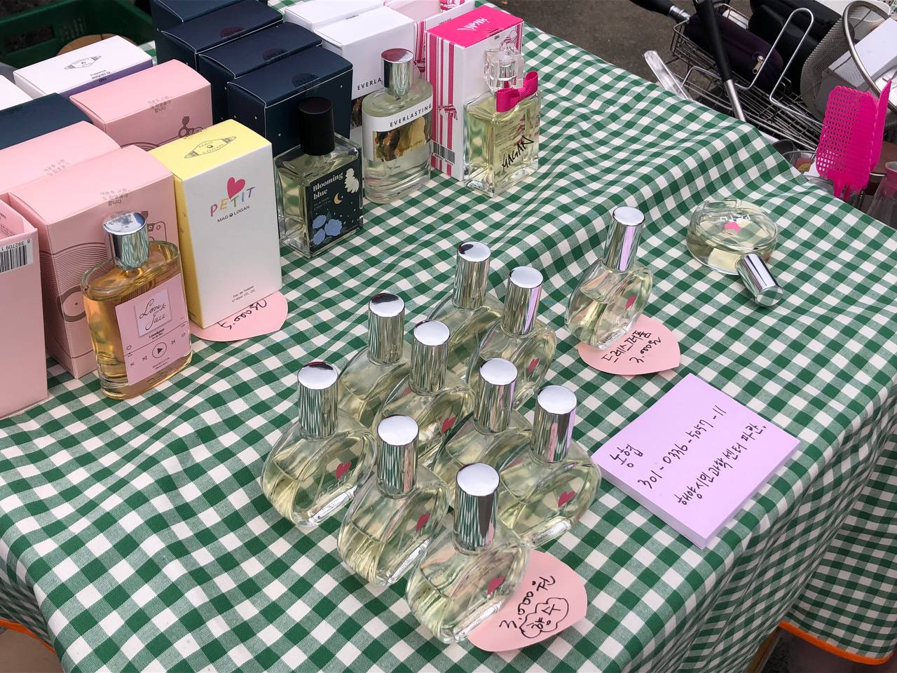 장사를 하시던 이동호 선생님은 평생 회사에서 사무직을 하다가 은퇴 후 제주에 내려오셨다며, 평소엔 수줍음이 많은 성격이라고 하시면서도 넉살 좋은 멘트와 함께 물건을 팔고 계십니다. 후원금 항아리를 가득 채우고 함박웃음을 지으시면서요! 인근의 향수박물관에 계신 우리나라 1세대 조향사 정미순님께서는 향수를 한가득 가져와 물품 후원을 해주셨지요.