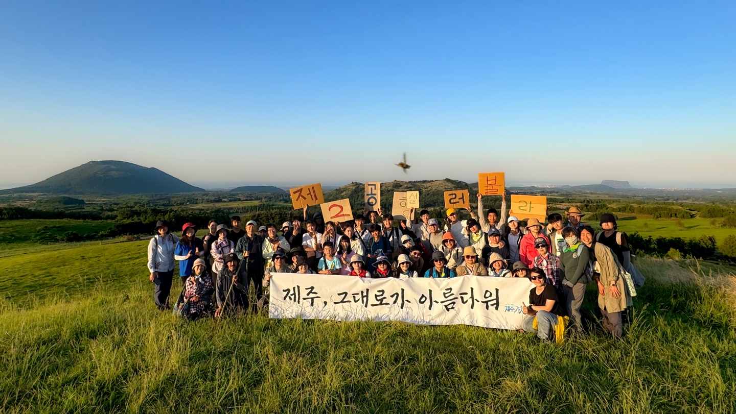 제2공항이 들어선다고 하는 동쪽 풍광이 얼마나 아름다운지, 그 원초적인 자연의 느낌이 얼마나 우리를 치유하게 하는지 알리고 싶어서 5-6년 전부터 ‘달맞이 오름’이라는 행사를 함께 하고 있습니다. 달빛 아래 오름을 걷는 거예요. 동쪽에 있는 동거믄이 오름에서 추석 연휴 때 달빛 아래 함께 걷고 또 연주자도 와서 첼로 연주도 하고 다양한 프로그램도 합니다. 사람들이 많이 오시고 서로 인사 나누고 해요.