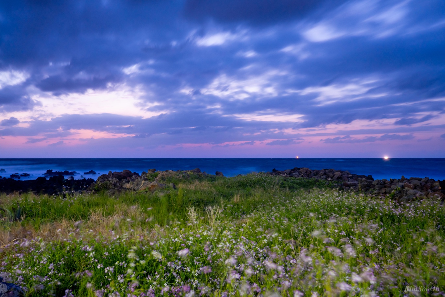 4월 하순 갯무꽃 만발한 제주 바닷가 저녁 풍경 ⓒ김수오