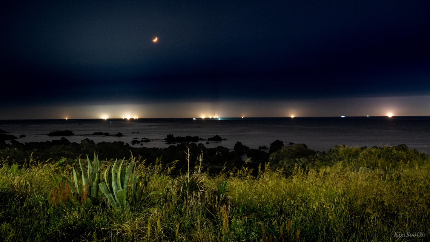 제주 밤바다를 비추는 고깃배 불빛 ⓒ김수오