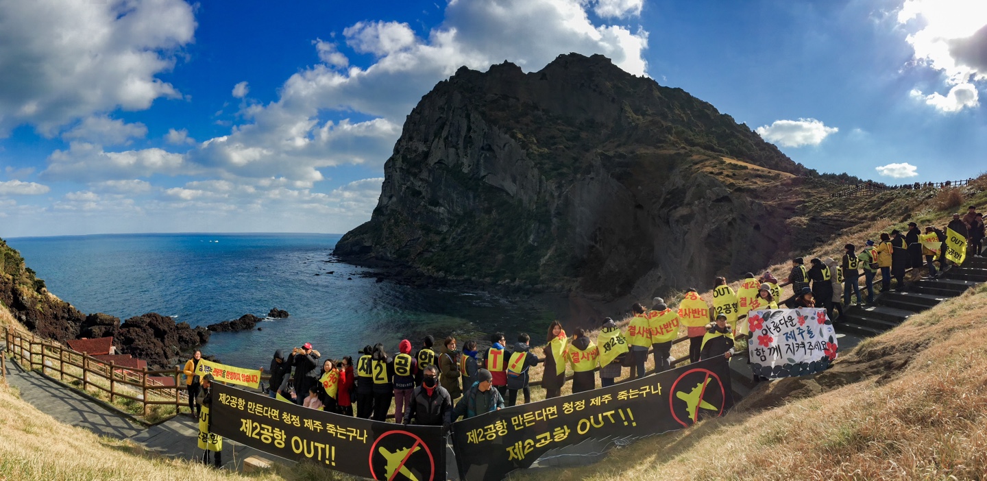 2018년 새해 첫날 제2공항 예정지가 내려다 보이는 성산일출봉에서 제2공항반대 시민들의 퍼포먼스 ⓒ김수오