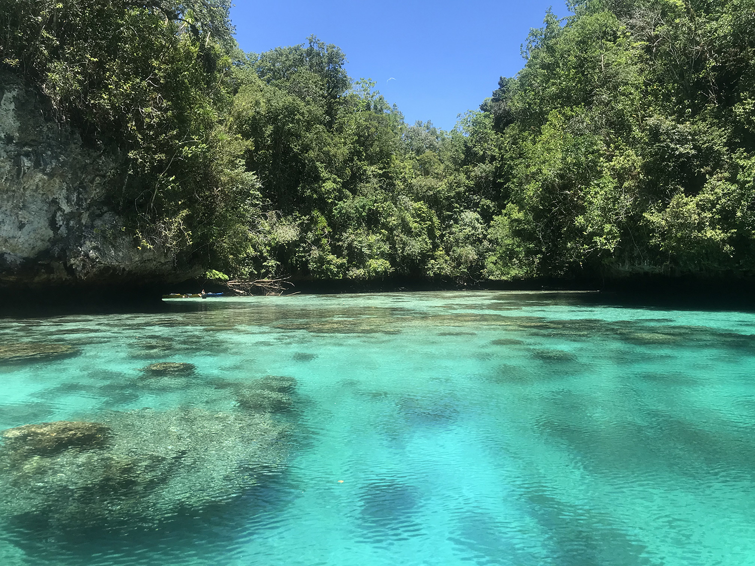 팔라우의 락 아일랜드에는 버섯처럼 독특하게 생긴 섬들이 있다. 그 덕분에 섬과 바다 사이에는 자연스레 그늘이 드리워지고, 그 안에 마치 호수처럼 둘러싸인 마린 레이크가 있다. 이곳은 파도 하나 없이, 잔잔하고 고요하다. 섬의 그늘 아래, 조용히 멈춰 서서, 새들이 지저귀는 소리와 햇살이 비추어 윤슬이 팔랑팔랑 빛나는 호수를 가만히 바라본다. 카약 위에 몸을 눕히자, 자연 속에서의 쉼을 오롯이 느끼며 조용히 그곳에 머무를 수 있었다. 마린 레이크의 새들과 식물, 그리고 문화에 대한 이야기를 나누다 보면 어느새 햇살이 점점 강해지고 피부에 땀이 맺힌다. 그때, 망설임 없이 ‘풍덩!’ 몸을 맡겨 바닷속으로 들어간다. 물은 놀라울 만큼 맑고, 수심은 발끝으로 닿을 듯 얕았다. 산호 사이사이엔 작은 생명들이 숨어 있었고, 마치 다른 세상에 온 듯, 잠시 숨을 참으며 조용히 그곳에 머무르니, 기분이 몽실몽실해지면서 점점 마음이 편안해짐을 느낄 수 있었다.
