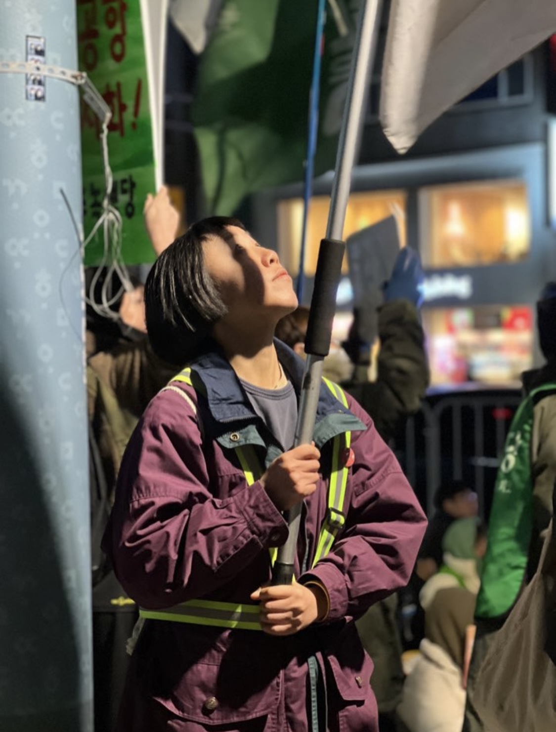 탄핵집회에서 제주여민회 깃발을 들고 ⓒ노슬미