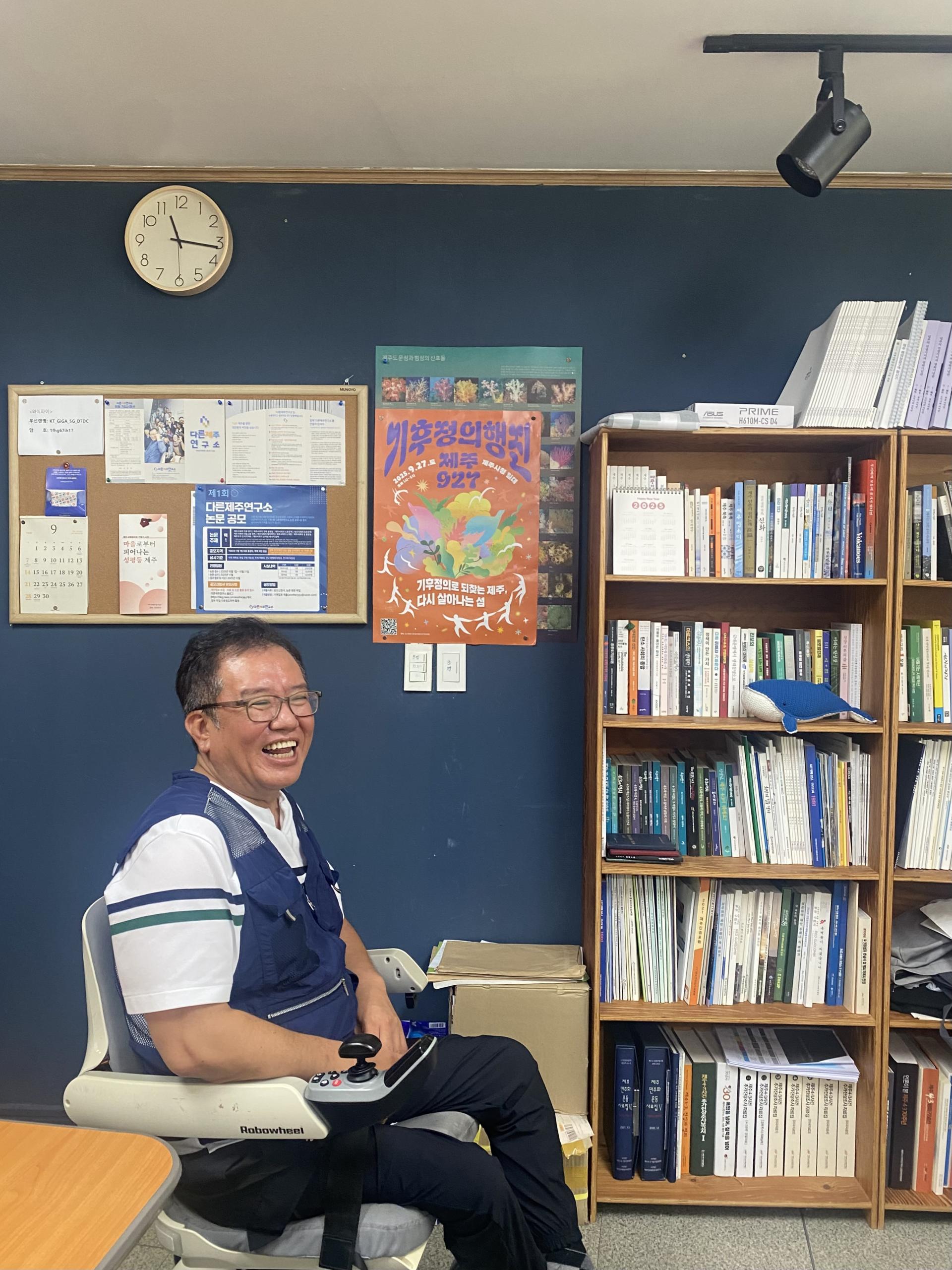 2025 제주 기후정의행진을 열흘 앞둔 시점, 제주의 한 극장에서 기후위기를 다룬 영화 [바로 지금 여기] 상영 소식을 들었습니다. 영화를 보러 많은 사람이 모였는데 그중 기후위기에 관심을 가진 활동가이자 치과의사인 강동진 님이 보였습니다. 순간, 이분의 이야기를 나누고 싶다는 생각이 솟구치더군요. 할 얘기 없다고 사양하셨지만, 간곡히 부탁드려 9월 25일 다른제주연구소에서 강동진(이하 동진) 님을 만났습니다.